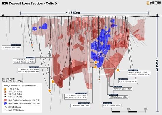 Jonathon Deluce, CEO of Abitibi Metals, commented: “These latest results mark a very significant milestone for Abitibi Metals. The 150-metre step-out confirms that B26 has the grade, scale, and continuity to become a cornerstone copper-gold asset in Québec. We’re now seeing consistent growth across multiple zones, from high-grade extensions in the west to expanding zinc-silver horizons at depth, all pointing to a much larger system than previously defined. With strong momentum, further assays expected, and a fully funded path through 2027, we’re positioned to continue to showcase why B26 is one of Canada’s next standout critical-minerals projects.”