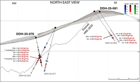 Drill holes: DDH 25-024, 25-077 and 24-064 have been previously announced by the Company and are shown here for illustrative purposes.