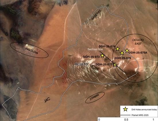 In parallel with the ongoing oxide-focused drilling, exploration is underway at the porphyry complex located approximately 4 kilometres northeast of Oculto. The Company has completed a deep drill hole at the Cerro Blanco target and four shallow holes at the Cerro Viejo target, with an additional deep drill hole underway at Cerro Viejo. These holes were designed to evaluate the potential for a large-scale mineralized system at depth. In addition, a deep drill hole is currently underway at Oculto East to test for potential porphyry-style mineralization beneath the high-grade gold zone, marking an important step toward assessing the deeper potential across the broader Diablillos system. All assay results for these deeper holes are expected to be received before year-end.