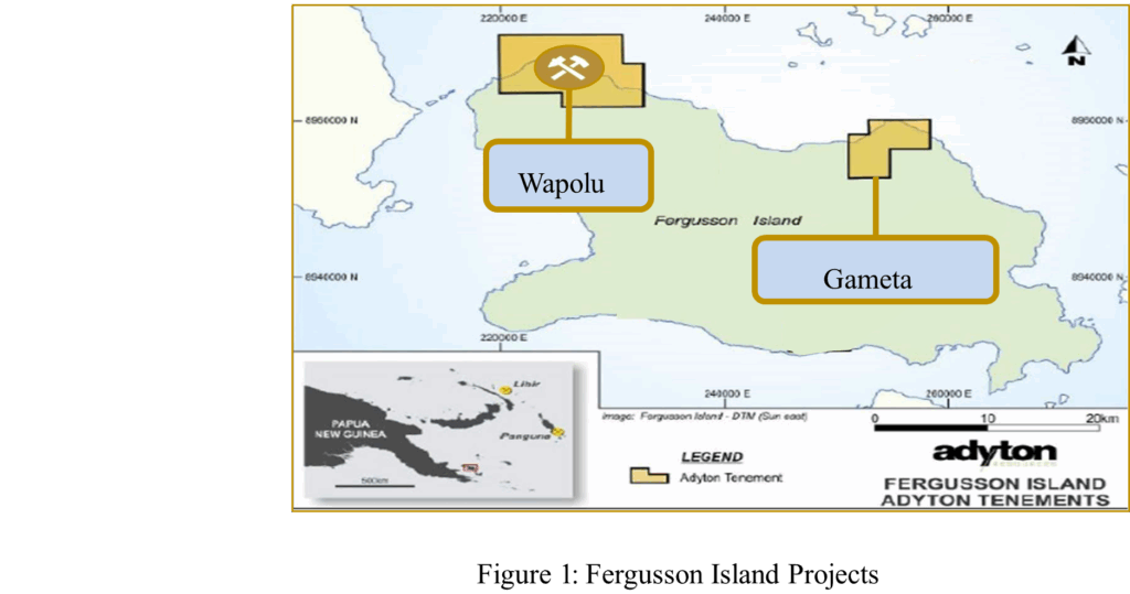 Adyton’s gold projects, held in JV with EVIH, are located on easily accessible islands in Papua New Guinea (PNG). The Gameta and Wapolu projects are situated on Fergusson Island in the Milne Bay province of PNG, which also hosts the Woodlark and Misima projects (refer to map of PNG deposits at the end of this document).