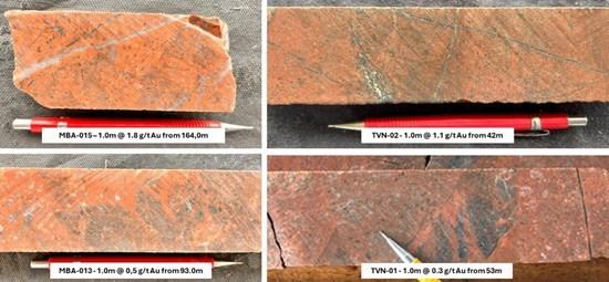 Hole MBA033 was recently completed to a depth of 497m and core samples are in preparation for assay. Hole MBA034, which is collared 100m south of hole MBA032 and aims to test a deeper intercept below that hole, is underway.