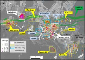 The Cajueiro district consists of two independently estimated gold mineral resources at Cajueiro Central and Maria Bonita, plus a series of eight additional untested exploration targets within a radius of 8km of Cajueiro Central.