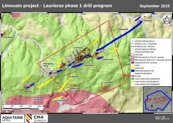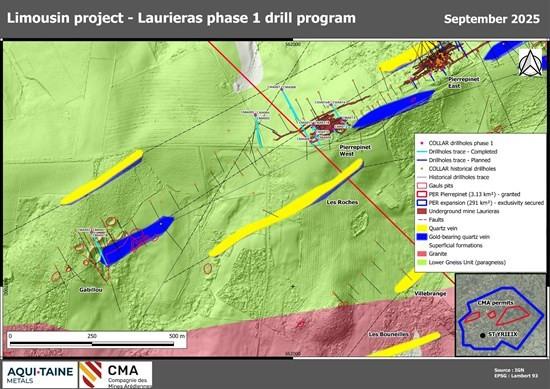 Aquitaine Metals Corp. is pleased to announce the first drill results from the Company’s 2025 Phase 1 drill program at its 100% owned Limousin gold and critical metal project in Nouvelle-Aquitaine, France.