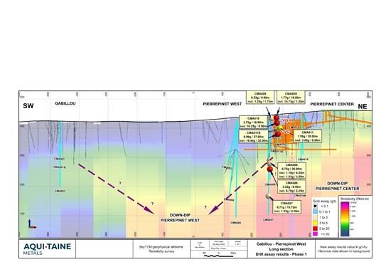 Chris Taylor, CEO of Aquitaine stated, “We are very encouraged by these initial results, which show grade and width profiles that were until recently not thought to be characteristic of this area. Our team’s expectations of broad mineralized halos around the high-grade gold veins that were historically exploited have been strongly supported. I commend our French staff for their highly professional conduct, and the high environmental and social engagement standards they are employing.