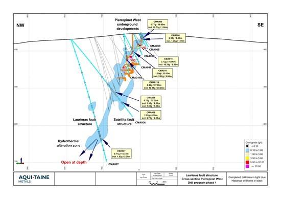 Drill holes CMA011B, CMA010, CMA009, CMA011 and CMA008 confirmed the historical drill results from COGEMA at the Pierrepinet West target while drill holes CMA006 and CMA007 tested the lateral and down dip extension of the Pierrepinet West target, extending the continuity of mineralization 165 metres below the lowest underground mining level.