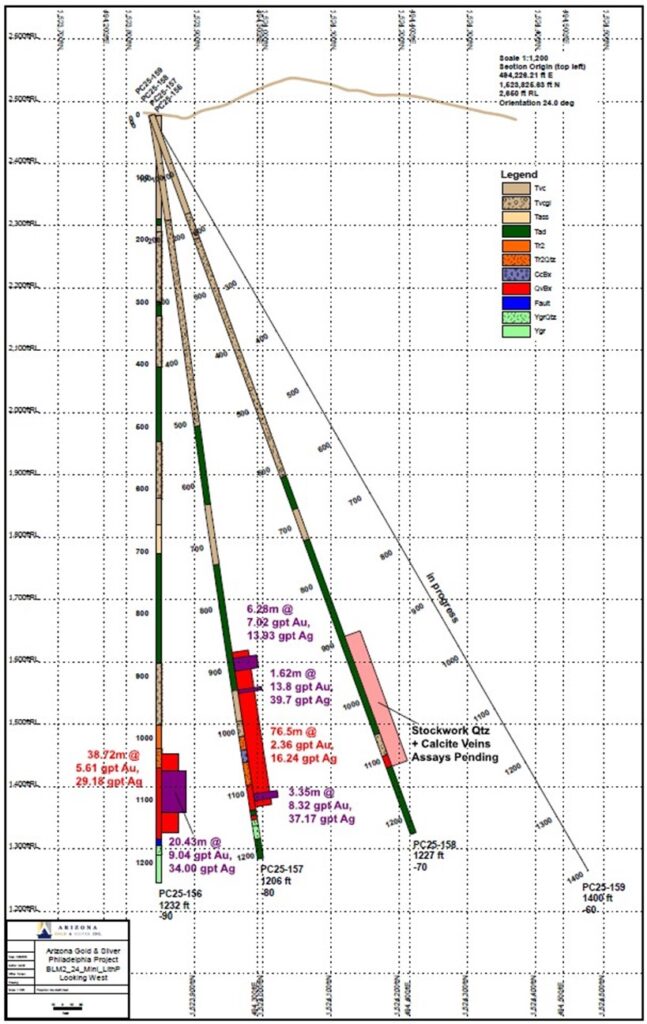 Arizona Gold & Silver Inc. (TSX-V: AZS) (OTCQB: AZASF) is pleased to announce it has received assays from the latest core hole, PC25-157. In this drill hole the mineralized structure is wider due to the presence of gold in additional host rocks. Drilling is continuing with PC25-158 in progress.