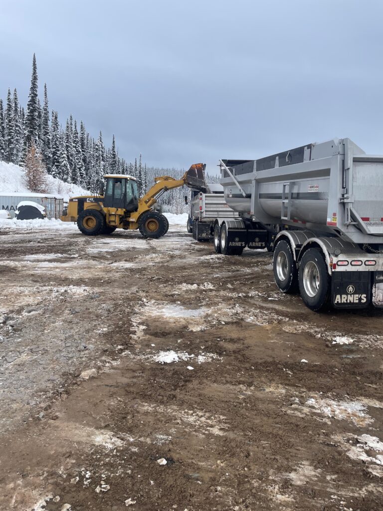 First trucks being loaded with Dome Mountain mineralized material headed for Nicola Mining for processing
