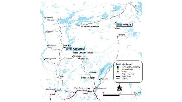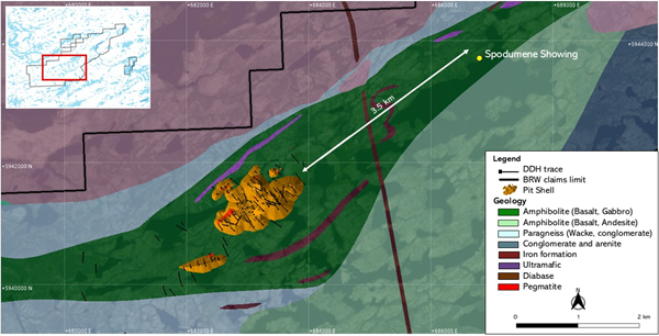 Brunswick Exploration Inc. (TSX-V: BRW) (OTCQB: BRWXF) is very pleased to announce a maiden, open-pit Mineral Inferred Resource Estimate of 52.2 million tonnes grading 1.08% Li2O and 131ppm Ta2O5 for its wholly owned Mirage Project located in the Eeyou Istchee Baie-James region of Quebec, Canada (see Figure 1). The MRE was prepared in accordance with the National Instrument 43-101 standards by PLR Resource Inc. and Synectiq Inc.