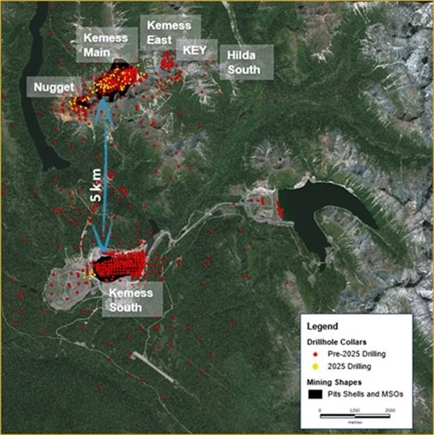 The updated indicated mineral resource includes 244.4 million tonnes, with an average grade of 0.42 g/t gold and 0.21% copper, containing 3.3 million ounces of gold and 1.1 billion pounds of copper. The updated inferred mineral resource includes 299.6 million tonnes, with an average grade of 0.37 g/t gold and 0.19% copper, containing 3.6 million ounces of gold and 1.2 billion pounds of copper. It reflects a gold and copper price assumption of $2,400 per ounce and $4.00 per pound, respectively, and incorporates additional ounces from the Nugget and Kemess South deposits resulting from recent drilling and technical work. For the purposes of the PEA mine plan and economics, only 47% of this updated indicated and inferred resource tonnes has been evaluated, limited to the Kemess Main and Kemess Underground deposits.