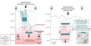 Figure 5: Side-by-Side Comparison of the Apollo System and the Neighboring Marmato Mine, Highlighting How the Ramp Zone and Marmato Deeps Systems Begin at the Same Elevation and the Potential for the Ramp Zone to Continue Expanding Along Strike and to Depth (CNW Group/Collective Mining Ltd.)