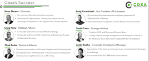 Cosa’s award-winning management team has a long track record of success in Saskatchewan. In 2022, members of the Cosa team were awarded the AME Colin Spence Award for discovering IsoEnergy’s (TSX:ISO) Hurricane deposit. All four individuals — Andy Carmichel, Craig Perry, Steve Blower and Justin Rodko — are part of Cosa’s team.