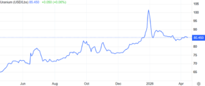 As of April 2026, the uranium market is experiencing sustained long-term price growth, reaching over 18-year highs of USD$93/lb, driven by severe structural supply constraints and rising, high-volume nuclear fuel demand. While the spot market has remained thin and volatile, recently tightening around $85-$100/lb, long-term contracting for new reactors remains the primary focus, with 75+ reactors under construction worldwide. (AI Overview)