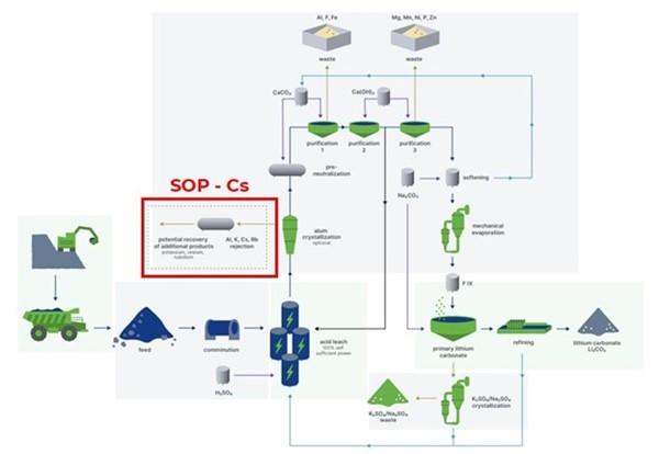Figure 1 – Schematic Falchani Lithium Carbonate Processing Flowsheet highlighting SOP-Cs Stage