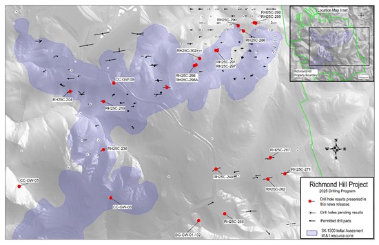 Figure 1. Plan Map of Dakota Gold Corp. Richmond Hill 2025 Drill Campaign Highlighted Drill Results.