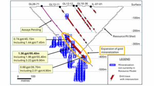 Figure 2 – Golden Lake Deposit Intersection – section looking Northwest