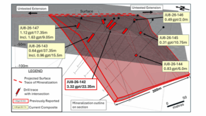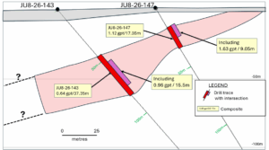 | 826 Zone | JU8-26-144 | 113.00 | 119.00 | 0.83 | 6.00 | 5.6 | -90.2 |