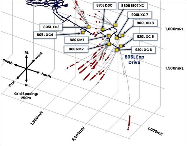 The drilling completed from the mid-section of the 805L Exploration drive (Crosscuts 3 and 4) focused on upgrading the data density of the Inferred Mineral Resource reported in MRE announced by the Company on 18 No vember 2025 (November 2025 MRE).