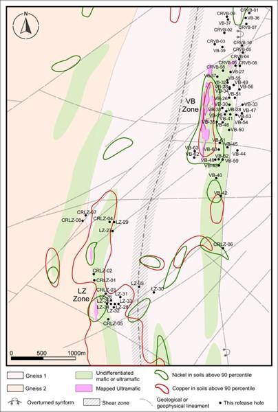 There is currently one drill rig active within the VB Zone, focused on expanding the current limits of mineralization along strike and two additional drill rigs testing regional nickel targets. Please see Figures 6 and 7 for details on drill hole locations and intercepts within the VB Zone.