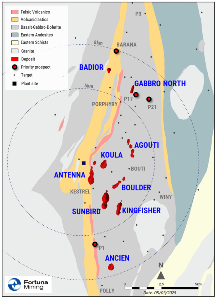 Fortuna Mining Corp. (NYSE: FSM) (TSX: FVI) is pleased to report results from ongoing exploration drilling at the Sunbird Deposit, located at the Séguéla Mine in Côte d’Ivoire. Recent drilling has successfully extended high grade mineralization at depth and confirmed the development of a second underground shoot, further supporting the potential for resource growth and mine life extension.