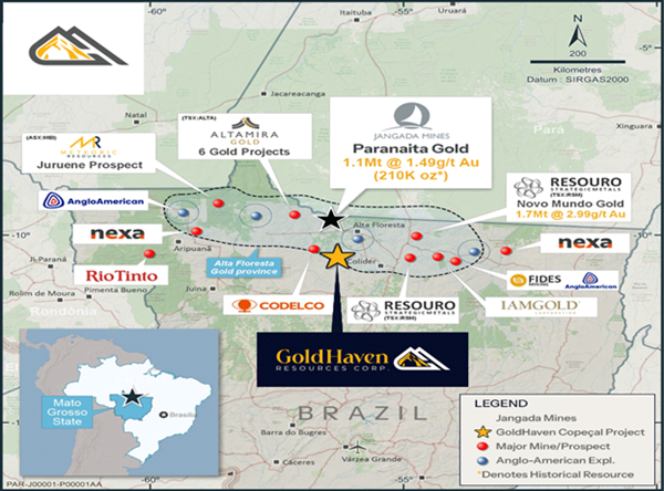 Figure 6: Location of the Copeçal Gold Project within Alta Floresta gold province, with competitor locations.