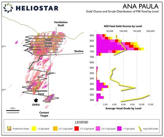 Figure 1 – Ana Paula Resource with Gold Ounce and Grade Distribution of Mill Feed by Level