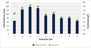 • 874,700 oz of gold produced over a nine year mine life averaging 101 koz/yr after initial ramp-up