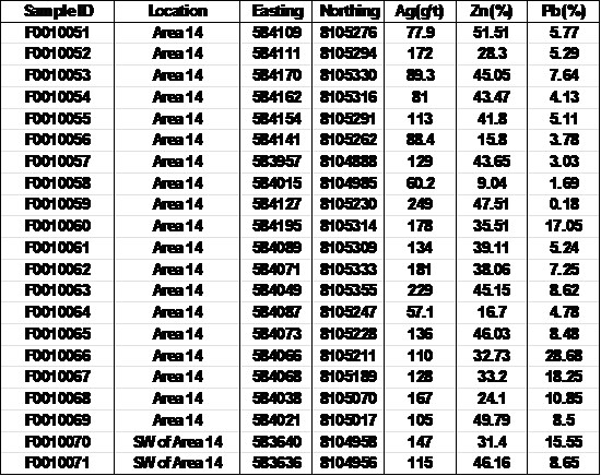 Reconnaissance sampling was also completed around the Area 14 target to identify new zones of mineralization.