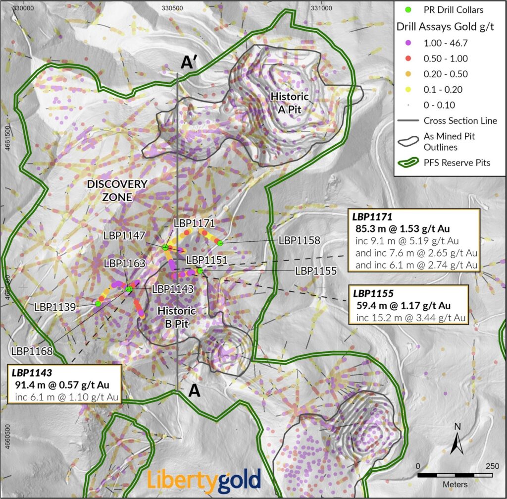 Liberty Gold Corp. (TSX: LGD) (OTCQX: LGDTF) is pleased to announce strong oxide gold assays from nine infill drill holes in the Discovery Zone at its Black Pine Gold Project in southeastern Idaho. These results are part of the ongoing ~40,000 metre feasibility drill program designed to support resource conversion, metallurgical modelling, geotechnical studies and mine design.