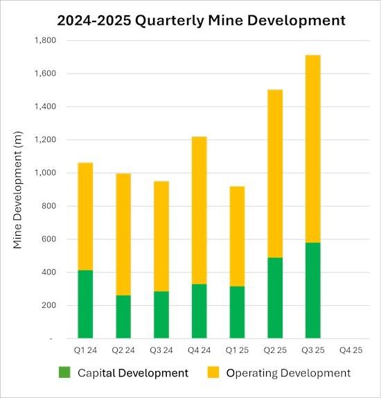 Mine performance for the quarter was also strong with 28,423 tonnes of mineralized material mined throughout the quarter, and a record 1,712 m of underground development completed during the quarter. The top three months of development at Tuvatu were all achieved during this quarter, surpassing the previous records set during the previous quarter. Mine development at Tuvatu has increased dramatically throughout 2025 as a result of the completion of the mine ventilation project, the addition of new mining equipment, and increasing the efficiency of mining methods and operations. With still additional equipment set to arrive on site, mine development is anticipated to increase further. The Company also completed production from the first ever shrinkage stope at Tuvatu, which was a major success and produced 5,704 tonnes of material at an average gold grade of 10.60 g/t. The company’s second shrinkage stope is already in development and is anticipated to be twice as large as the first and will contribute to gold production in Q4 2025 and Q1 2026.
