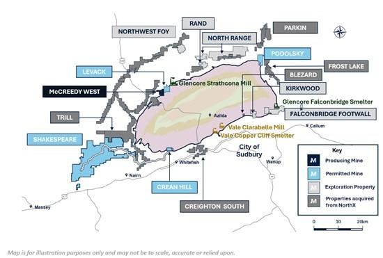 Figure 1: Location of Magna Mining’s Existing Properties, and Key Sudbury Infrastructure