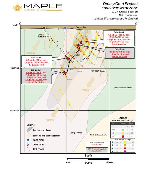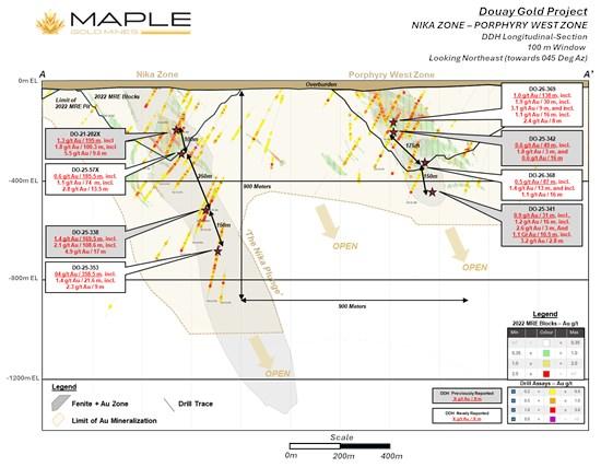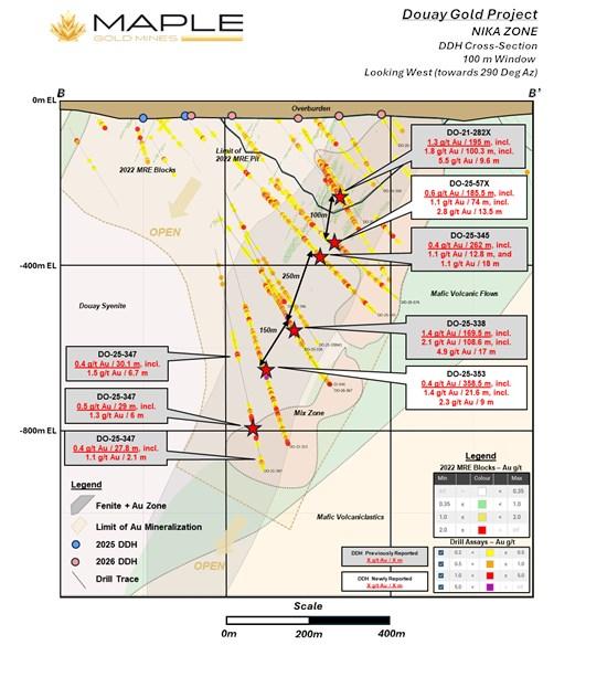 “These results validate the continuity and similarity of higher-grade plunging shoots within the Nika and Porphyry West zones, while successfully extending bulk tonnage gold mineralization to depth,” stated Ian Cunningham-Dunlop, P.Eng., Executive Vice President of Maple Gold. “With the largest drill program in the Company’s history nearing completion, our team is now in the planning phase for even more aggressive fully funded drill programs in H2 2026 and 2027 that will target near-term resource expansion opportunities at Douay/Joutel and the significant district-scale growth potential we see across the broader Property.”