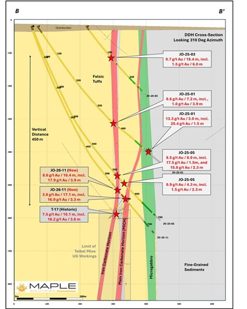 m3 Published April 1, 2026 at 859 × 1075 in Maple Gold Reports Multiple High-Grade Gold Intercepts from Continued Step-Out Drilling at Joutel, Including 17.9 g/t Gold over 3.9 Metres Within 8.6 g/t Gold over 10.4 Metres in the Telbel Mine Area