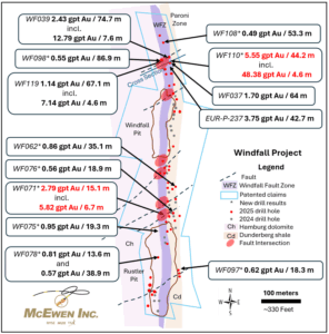 Best Hole Drilled by McEwen at Windfall – Now Targeting Deeper Extensions
