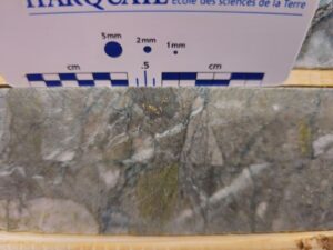Figure 3 – Visible Gold Cluster- Drill core from hole JU826- 142