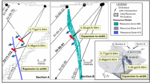 Figure 5 – Juby Resource Zone 406, 412 – Latest Assays extending mineralized width of zone