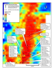Midnight Sun’s COO, Kevin Bonel, states “Similar to the nearby Lumwana Mine, delineating basement-hosted copper systems like Dumbwa requires defining continuous, shallow mineralization along extensive strike at surface, and these latest intercepts continue to do exactly that. Each hit strengthens our confidence in the Dumbwa system and further validates our thesis. Our strategy of methodically delineating Dumbwa in 100 to 200 metre increments along strike has proven to be the right strategy to rapidly reveal the true scale of this copper system. We are advancing quickly, hitting consistent copper mineralization that mirrors what my team encountered as we expanded Lumwana. With drilled strike length now exceeding 3.6 kilometres with exceptional continuity, we are efficiently tracking the system and delineating it with precision. As the strike continues to grow, each step-out makes Dumbwa larger, stronger, and increasingly compelling.”