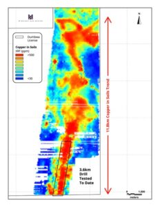 The Dumbwa Target hosts a robust 20-kilometre copper-in-soil anomaly, and ongoing drilling has demonstrated strong geological similarities to the nearby Lumwana deposit, underscoring its potential to host a significant copper system.