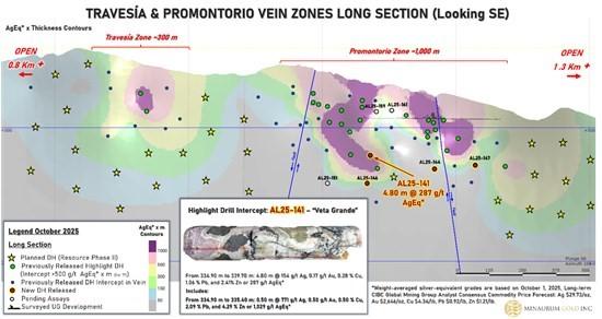 Minaurum Gold Inc. (TSX-V: MGG) (OTCQX: MMRGF) is pleased to announce further results of its 2025 resource-definition drill program targeting the Promontorio, Travesia, and Europa vein zones at its Alamos Silver Project in Sonora, Mexico. Drilling continued to return numerous high-grade intersections including: (Table 1; Figures 1-4).