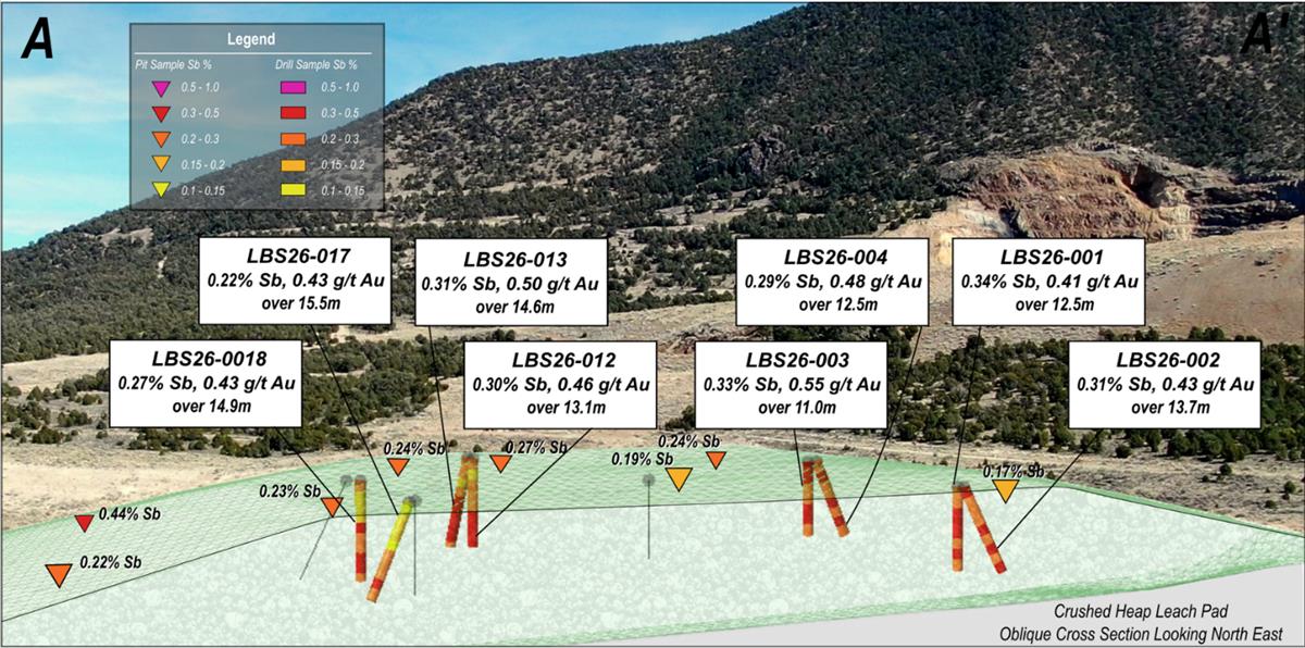 NevGold CEO, Brandon Bonifacio, comments: “The first 10 of 17 holes with assays received on the Crushed leach pad have once again exceeded our expectations as we have seen higher, consistent grades for both antimony and gold compared to our Phase I test pit sampling program completed in January-2026. It is extremely encouraging that we continue to unlock value from the antimony and gold potential at Limo Butte with each work program and milestone completed. We are focused on advancing the Project to antimony production by 2027 to become the next, and one of only very few, commercial scale antimony producing operations in the United States. We will receive the remainder of the assays from the drill program on the historic gold leach pads over the coming weeks, and we will rapidly advance the maiden antimony-gold MRE as a key step in continuing our path to antimony production by 2027.”