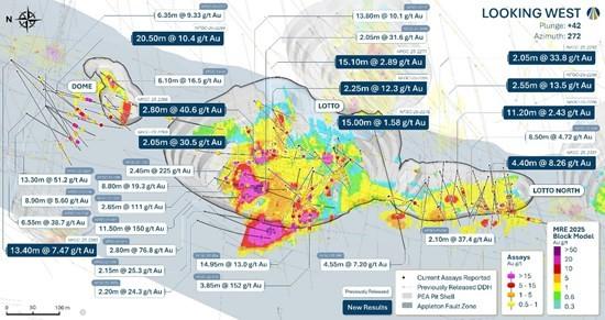 The 2025 drilling at Dome and the nearby Golden Dome zone is largely focused on lower grade domains peripheral to the main high-grade corridor as reflected by the results reported. The results conform well to the existing block model and will be incorporated into the next MRE update.