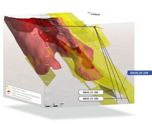 • Drill hole SNUG-25-194 was designed to bridge mineralization between two widely spaced resource expansion drill holes SNUG-25-184, located 183 metres down-plunge from the current MRE, and SNUG-25-186, a further 130 metre step-out (see news releases dated June 30 and August 13, 2025).
