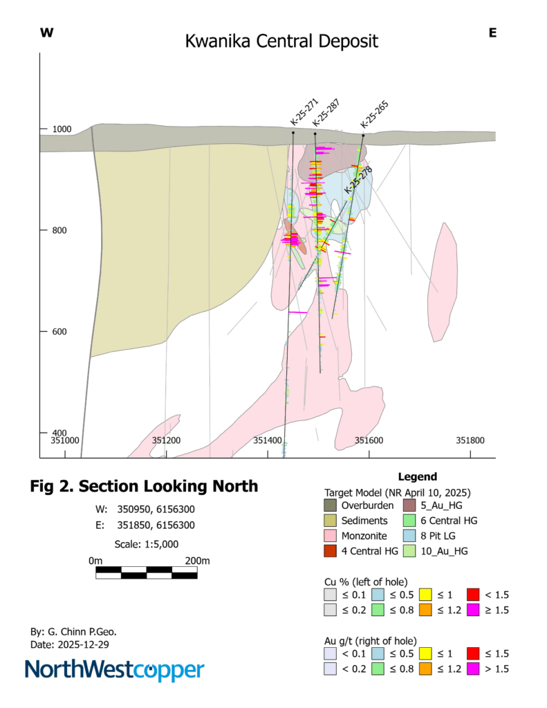 Paul Olmsted, CEO of NorthWest, stated: “This drill hole is the 15th reported from our 2025 exploration program at Kwanika, a program which we believe has been highly successful in achieving its goals and will be value accretive. The program exceeded expectations by demonstrating the continuity of higher-grade zones over significant widths in both the Central Zone and the Pit Zone, materially improving our understanding of the mineralization. Results from the Pit Zone, in particular, are expected to support higher-grade open pit mineral resources. When combined with increased confidence in the higher-grade Central Zone to support alternative underground mining methods, and targeted recovery improvements from ongoing metallurgical test work, we expect to deliver an exciting mineral resource update in the first quarter of the year. Together, these developments are expected to support the potential for a more capital-efficient and economically compelling combined open pit and underground development plan, to be reflected in an updated preliminary economic assessment (“PEA”) delivered in mid 2026 that will aim to improve upon the 2023 PEA3.”