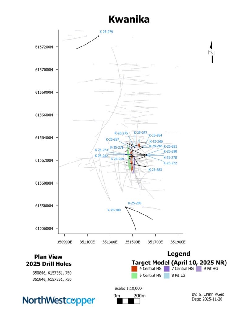 Paul Olmsted, CEO of NorthWest stated: “In 2025, the Company changed its strategy to prioritize higher-grade zones within the existing mineralization at Kwanika. Results from the first seven holes of the 2025 exploration program have largely met or exceeded expectations, reinforcing the potential for meaningful grade improvements by focusing on higher-grade domains. The program to define these higher-grade zones is progressing exceptionally well, metallurgical test work is advancing rapidly, and we anticipate announcing initial results before the end of the year. This information will be used to support an updated mineral resource estimate, which will form the basis for evaluating alternative top-down underground mining methods. Our objective is clear: to deliver a more capital-efficient and economically robust open pit and underground development plan in an updated PEA compared to the 2023 PEA2.”