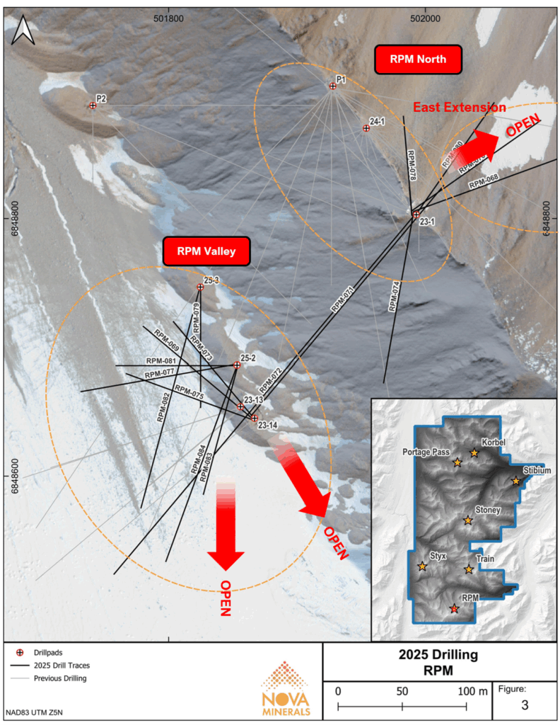 • All results from RPM have now been reported. Further drill results will be released once received and validated under Nova’s QA/QC procedures, after which an updated Mineral Resource Estimate (MRE) will incorporate results from the 2023–2025 drill programs.