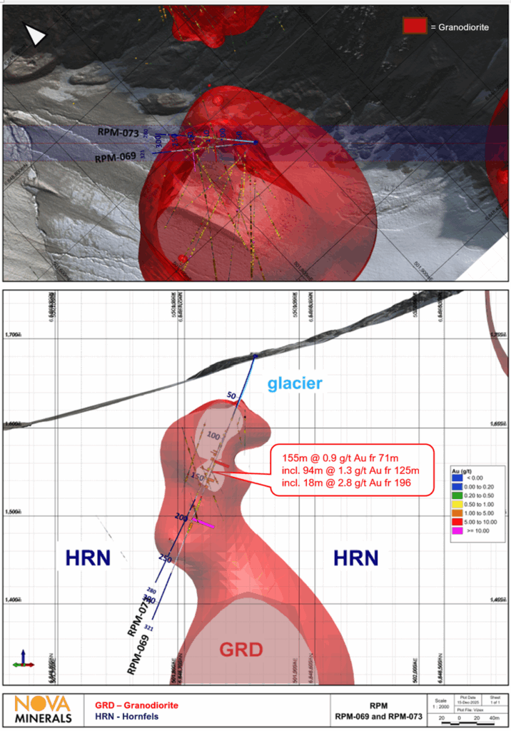 • RPM-025: 76m @ 1.2 g/t Au from 440m, including 43m @ 1.5 g/t Au from 474m, and 30m @ 1.7 g/t Au from 486m