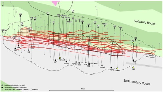 A total of 79 holes (35,300m) have been completed on the Omai project in 2025. Of these, 30 holes (13,250m) completed or underway on Wenot, are not included in the recent August 2025 updated Mineral Resource Estimate. These will contribute to an updated MRE planned for early 2026, in advance of the updated Preliminary Economic Assessment expected in H1 2026. Five rigs are currently drilling on the Wenot deposit, continuing to focus on areas that have the potential to further expand the resource and optimize the upcoming PEA. The Company is pleased to report that it has exceeded its target of completing an additional 10,000m of drilling, post the August MRE, by year end.