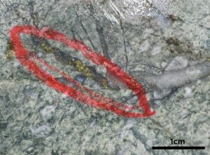 Plate 1 – Visible Gold from Drill Hole MC25-213 at 27 m Downhole Depth