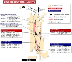 Orla Mining Ltd. (TSX: OLA) (NYSE: ORLA) is pleased to announce results from its 2025 exploration program at the South Carlin Complex in Nevada. The 18,000-metre drilling campaign delivered significant oxide intercepts outside current pit designs and advanced multiple satellite targets, reinforcing resource growth potential across the Company’s extensive land package along the prolific Carlin Trend ahead of planned 2028 production.