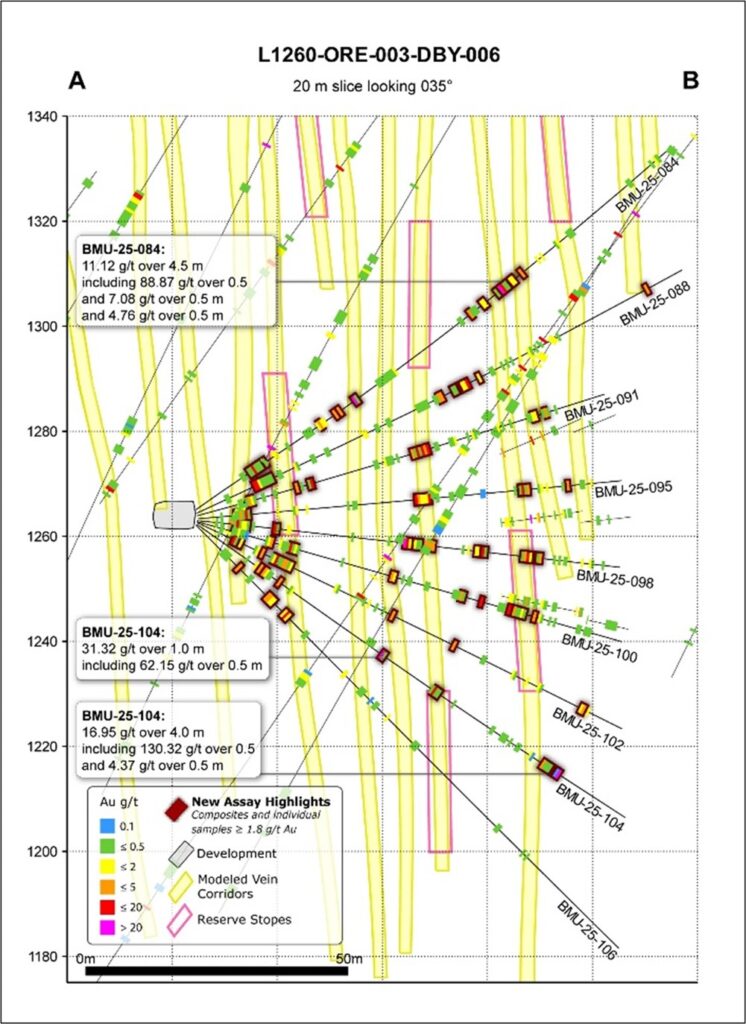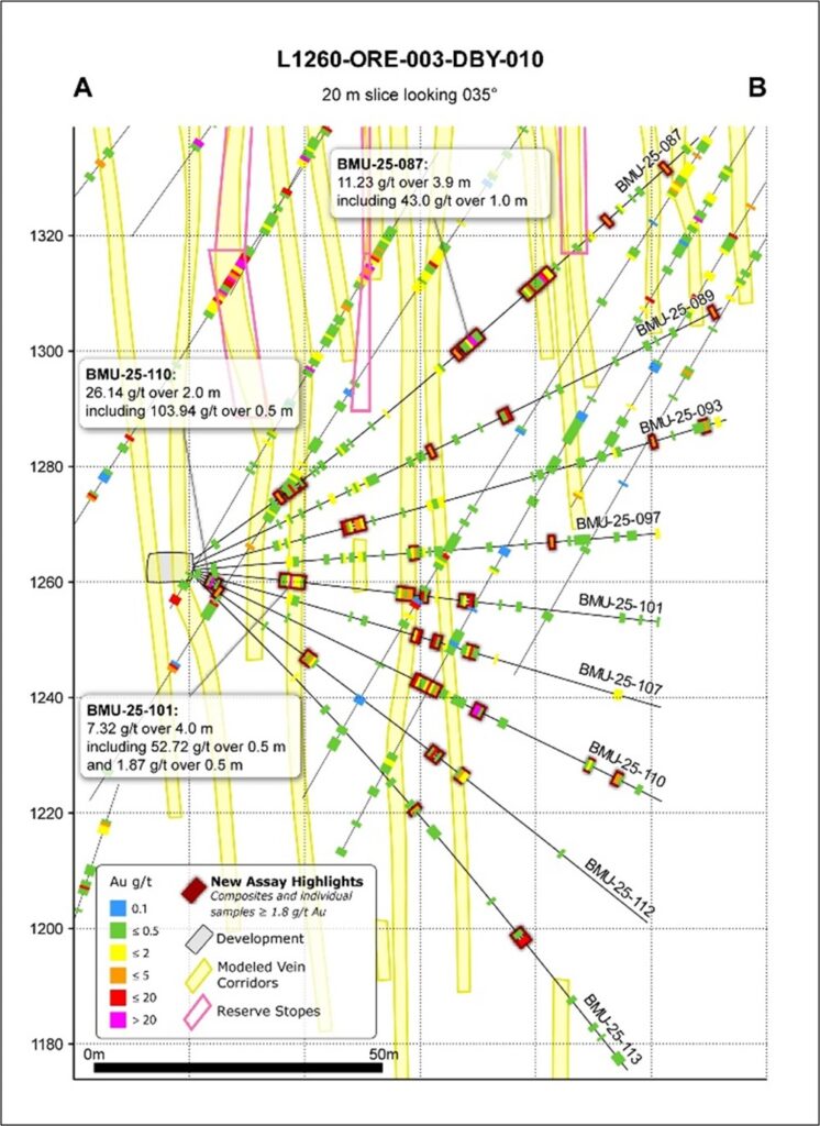 Chris Lodder, President, stated, “We continue to see good alignment of ongoing infill drilling results with our modelled vein corridors and planned stope shapes, along with occurrences of upside mineralized zones outside current reserve outlines. This tighter drill spacing sharpens our understanding of vein corridor spatial geometries and local variability, while reinforcing the importance of infill drilling in underexplored zones. As this work concludes in the first quarter of 2026, the resulting information is expected to help refine production designs and sequencing.”