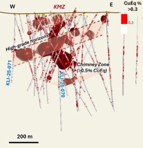 “The 2025 drill program at Kliyul, focused on infill and resource expansion at KMZ, was a big success,” said Blaine Monaghan, President & CEO of Pacific Ridge. “Drill hole KLI-25-070 returned one of the best intervals ever recorded at KMZ and drill hole KLI-25-071 extended copper-gold mineralization 110 m to the west. The 2026 drill program at Kliyul will focus on continued resource expansion drilling at KMZ and testing a number of drill targets that occur along an under explored 6-km mineralized trend.”